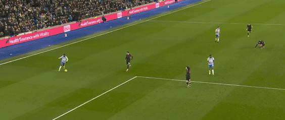 布莱顿的边锋们在他们两人的地带内从容不迫地打出了多次漂亮的配合。